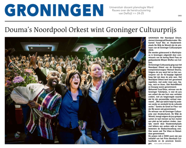 „Van de wethouder en de directeur van schouwburg De Lawei kreeg ik als Groningse musicus carte blanche om muzikale evenementen te brengen. Maar ik had geen enkele ervaring met dirigeren. Ik belde eenvoudigweg een orkest van bevriende musici bij elkaar, zo ontstond het Noordpool Orkest met uiteindelijk echte topmusici. Toen leek het wel een kamikaze-actie. Het Metropole Orkest als lichtend voorbeeld kwam me goed van pas. Een symfonieorkest met slagwerk en gitaren dat lichte muziek brengt: het is nog steeds een gouden idee. Vier trom- petten kwamen erbij, vijf saxofoons, drums. Vrijwel meteen ontdekten we dat het geen eenmalige gebeurtenis was, geen hobby, maar structureel. Symfonie- orkesten putten hun kracht uit het verle- den en de traditie, ik zocht naar nieuwe wegen. In die tijd moesten orkesten enorm bezuinigen, het was werkelijk kaalslag. En daar kwamen wij als jong en meteen groot orkest, het leek kansloos. Maar integendeel. We ontlenen nu 80 à 90 procent aan eigen inkomsten en hebben, als superkleine organisatie, slechts 10 procent aan overheadkosten.”